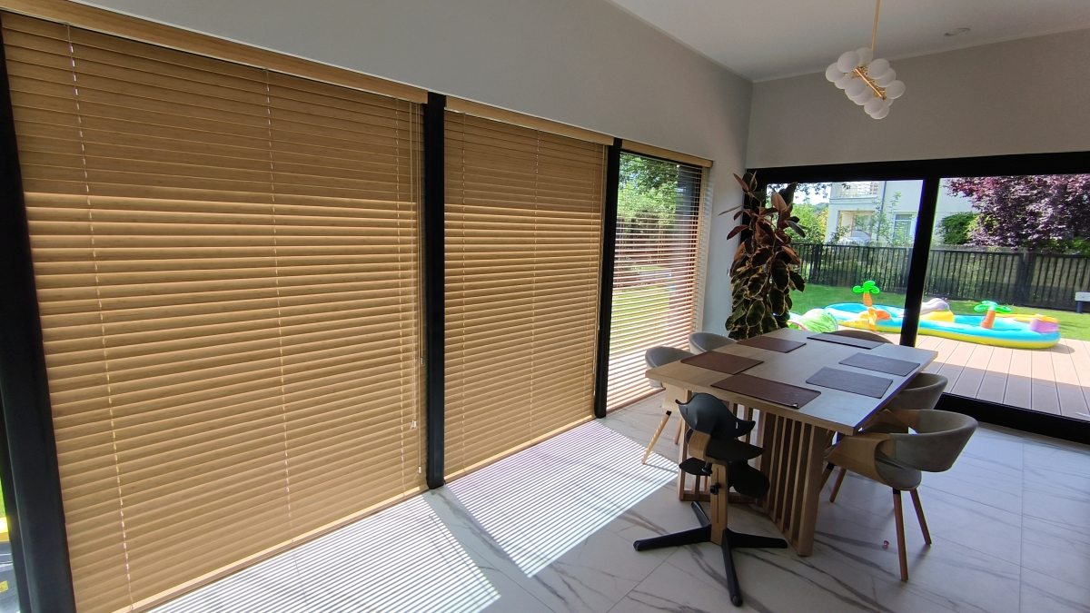 Żaluzje drewniane pasują do każdego stylu we wnętrzu. Naturalne drewno działa jako izolator, pomaga utrzymać temperaturę i poprawia akustykę pomieszczenia. Żaluzje aluminiowe to lekkie i trwałe osłony, zapewniające prywatność oraz precyzyjną regulację ilości światła i cyrkulacji powietrza.